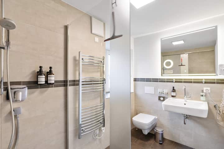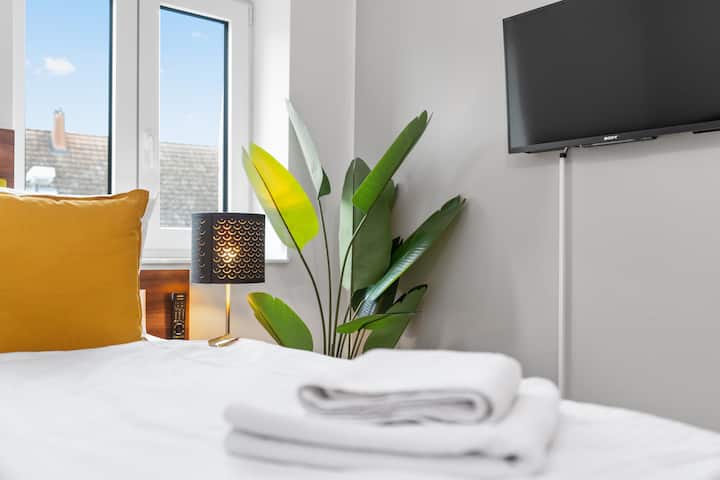 Perfekt für Ihren Familienurlaub oder einen Trip mit Freunden, bieten unsere drei Zimmer genug Platz für bis zu 6 Personen. Zwei Schlafzimmer mit himmlischen Doppelbetten und ein Wohnzimmer, ausgestattet mit einem zusätzlichen Doppelbett, einer komfortablen Sitzgruppe und einem Fernseher, laden zum Entspannen und Genießen ein.