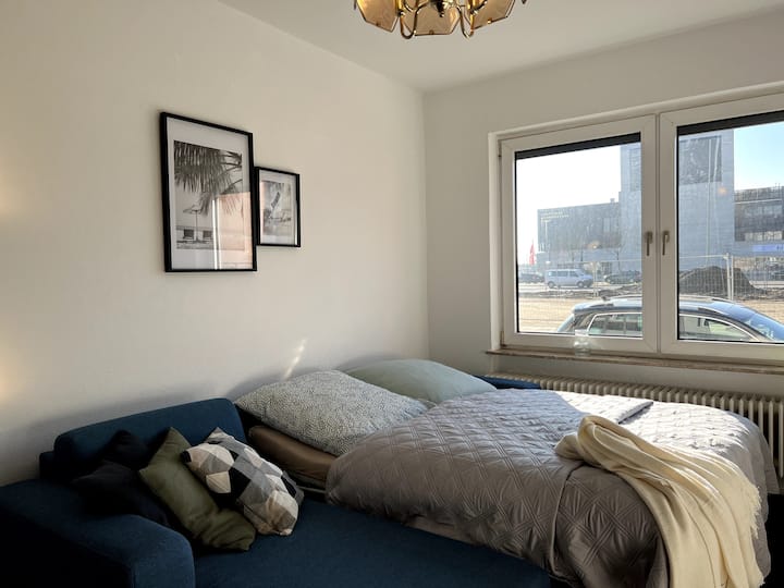 2 Betten und ein aufklappbares Schlafsofa sind zu eurer freien Verfügung bei eurem Aufenthalt.