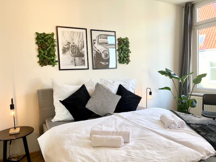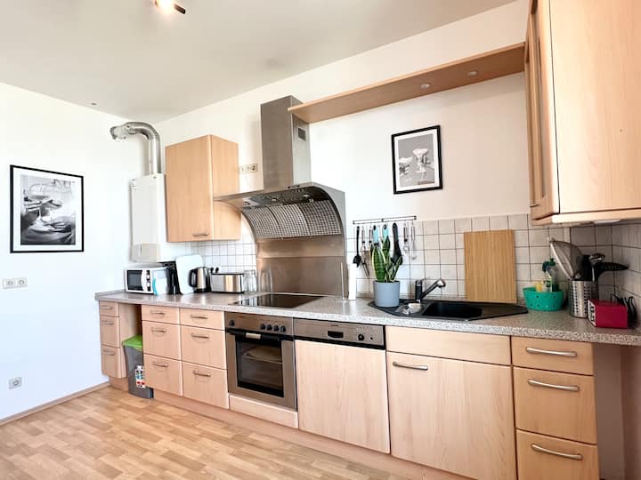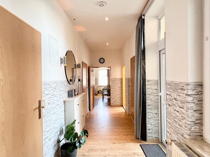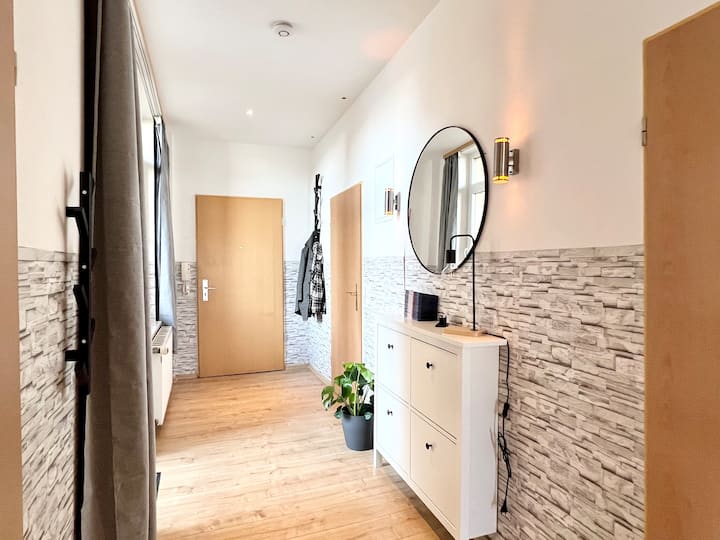 Unsere Ferienwohnung ist geräumig und bietet Ihnen mit 100m2 ausreichend Platz zum Entspannen und Erholen. Wir haben uns sehr viel Mühe gegeben, die Wohnung stilvoll und gemütlich einzurichten, damit Sie sich wie zuhause fühlen können. Sie werden eine moderne und trendige Ausstattung vorfinden, die keine Wünsche offen lässt.