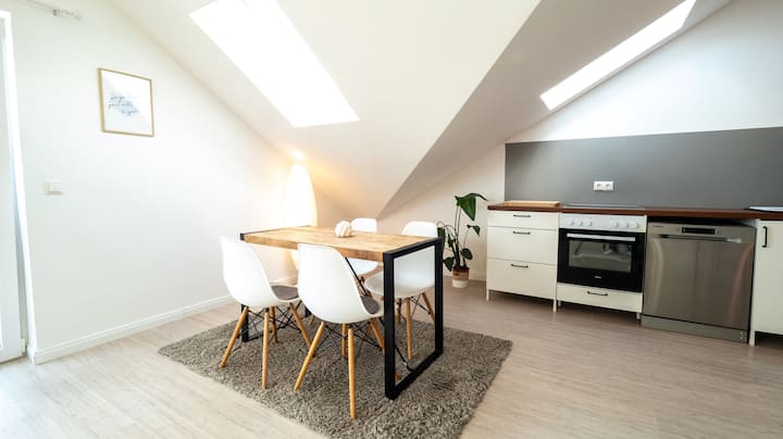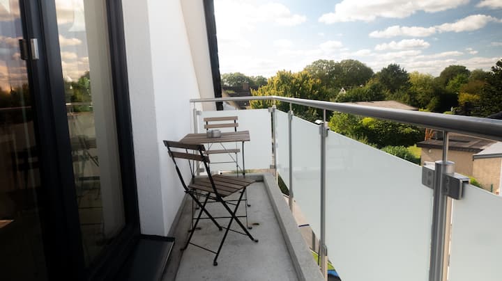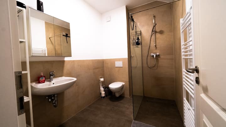 Die erstaunlich große, hochmoderne Neubauwohnung verfügt über einen großen FULL-HD Smart TV.