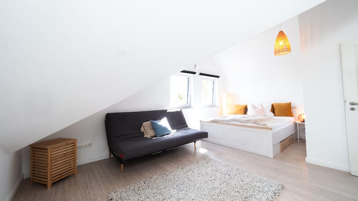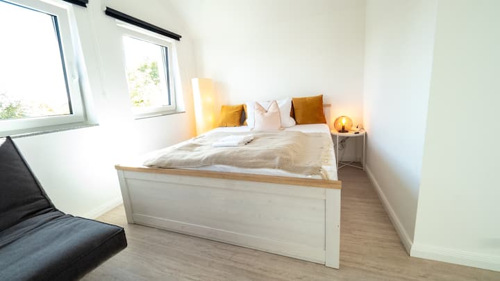 1 Riesenbett und ein Schlafsofa sind zu eurer freien Verfügung bei eurem Aufenthalt.